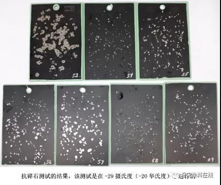 將發(fā)生的損壞評估為碎石損壞的密度和數(shù)量。汽車制造商有自己的測試標(biāo)準(zhǔn);例如通用汽車的GMW14700和大眾奧迪的PV 1213測試方法。標(biāo)準(zhǔn)因汽車制造商而異,但是最小密度的小缺陷被認(rèn)為是可以接受的。