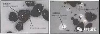 ①過電鏡直觀的觀察金屬顏料與底粉間的黏結(jié)效果: